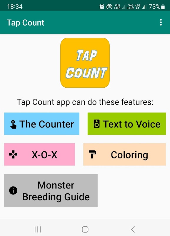 Tap Count gives you the best number counting from zero to-infinitives. You can now count forever just tapping on the screen to count whatever you want such as counting heart rate, counting your friends in the classroom, counting sheep in the stable, counting cars in the street e.t.c. Your count can be re-called to load on the button text to keep counting even after the phone turns off!