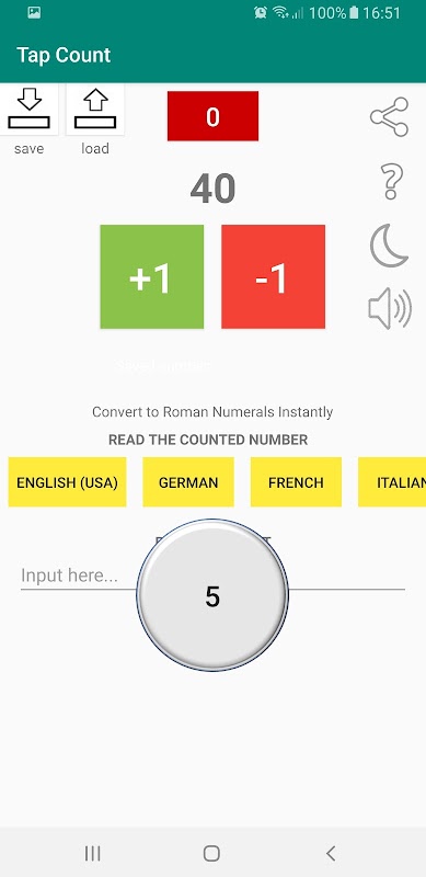 Tap Count gives you the best number counting from zero to-infinitives. You can now count forever just tapping on the screen to count whatever you want such as counting heart rate, counting your friends in the classroom, counting sheep in the stable, counting cars in the street e.t.c. Your count can be re-called to load on the button text to keep counting even after the phone turns off!