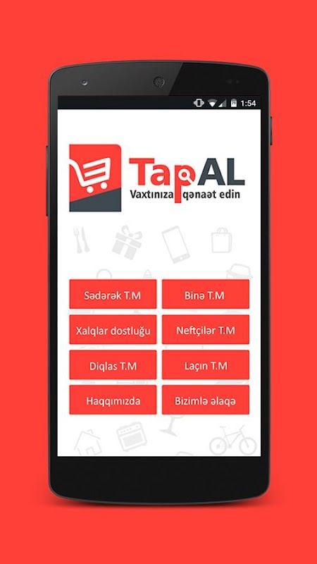 TapAL - Sədərək, Binə , Xalqlar dostluğu, Neftçilər , Laçın və digər Azərbaycanın ən tanınmış ticarət mərkəzlərini özündə birləşdirən bir proqramdır. Artıq axtarışa saatlarla vaxt sərf etməyə vəya uzun məsafələr qət etməyə ehtiyyac qalmadı! TapAL mobil əlavəsindən istifadə edərək Siz tez bir zamanda almaq istədiyiniz istənilən malları tapa bilərsiniz. Bu, istifadəsi çox rahat olan bir sistemdir və sizə sadəcə olaraq bu mobil əlavəni yükləyib geniş mağazalar bazasından istifadə etmək qalır. Bunun üçün bəyəndiyiniz ticarət mərkəzini sistemdən seçib kateqoriyalara görə axtardığınız malları rahatlıqla tapa bilərsiniz.