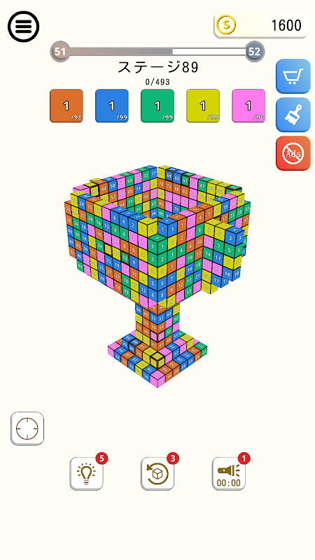 A World of Puzzles Awaits in Normal Stages: With approximately 100 stages, the normal mode of TapNumber3D is your playground of puzzles. Each level introduces new challenges, evolving from simple layouts to complex arrangements with over 1000 blocks. Color-coded difficulty levels guide your journey, letting you choose the perfect challenge for your skill level.
