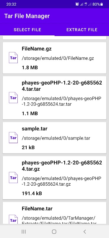 This tar file extractor and opener allows you extract all .tar gz files. We support all forms of tar compressed files including TAR, GZ, TAR.GZ, Z, TAR.BZ2 & ZIP extensions.