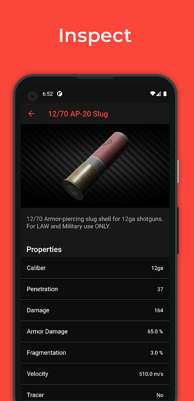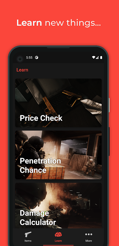 The unofficial Escape from Tarkov companion app, brought to you by Veritas with help from his community, is just what every PMC needs by their side before, during, and after their raids! Search, view, and compare everything from firearms, ammo, and body armor, to medical items and melee weapons. Interactive ballistics calculators help you learn about damage, penetration, and fragmentation of different rounds vs. different types of armor and enemies. Informational write-ups on the various systems in the game and how they work, from a high-level perspective, and so much more coming in the future!