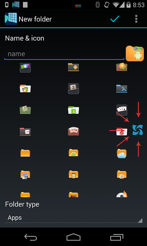 Open setting > Edit start menu item, then click on action bar > add new to add new folder. Type folder name, select icon and folder type.