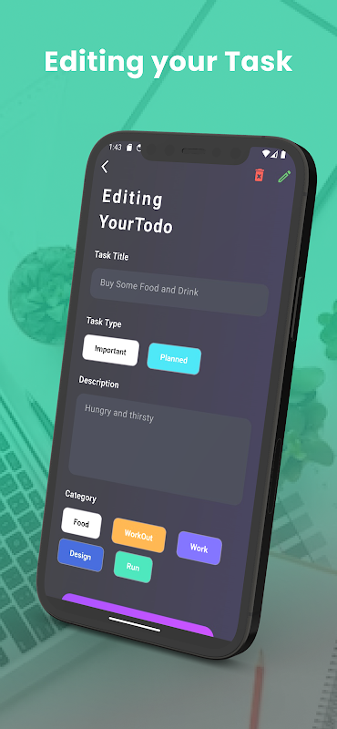 With TaskCuy, you will experience the ease of managing all your daily tasks, jobs, and projects with one touch. Enjoy an elegant and intuitive interface, while taking advantage of the powerful feature of managing customizable task categories.