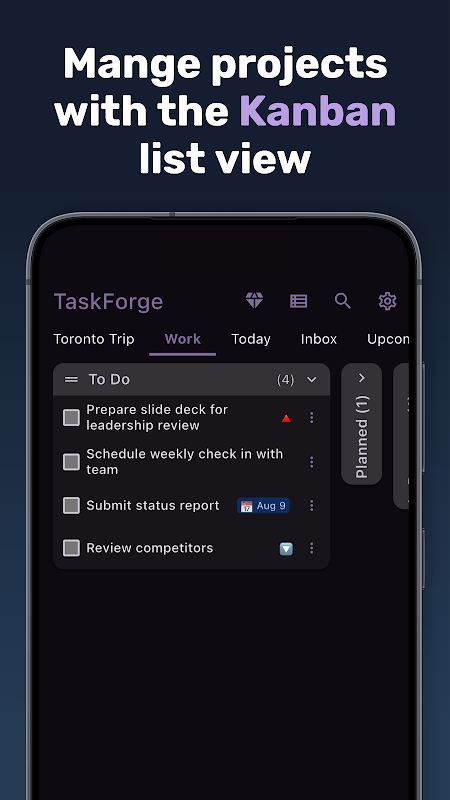 TaskForge is a powerful task management app for Obsidian users that functions as a specialized file manager for your Markdown task documents. It provides comprehensive access to your Obsidian vaults and task files stored anywhere on your device.