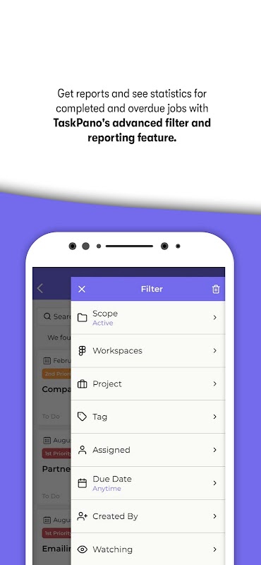 * Filter and display the tasks by many options thanks to its advanced search module.