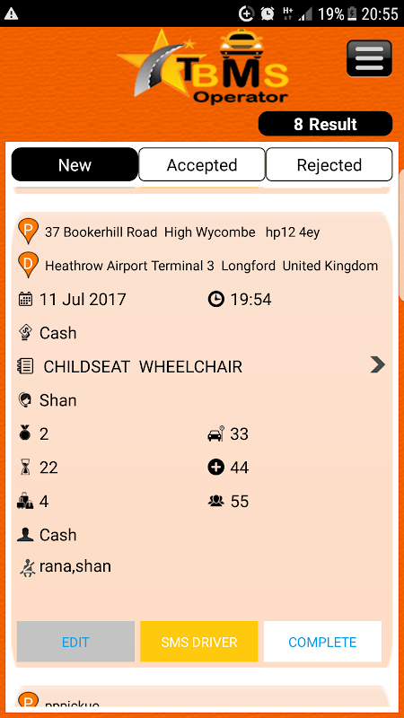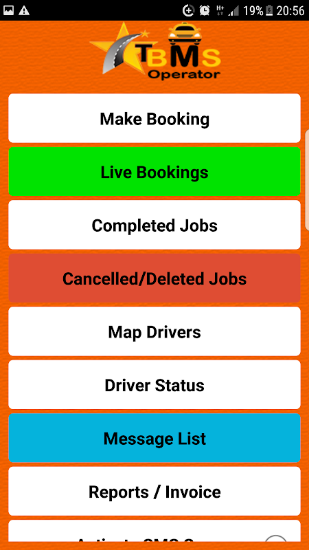 TBMS Operator app taxi dispatch system