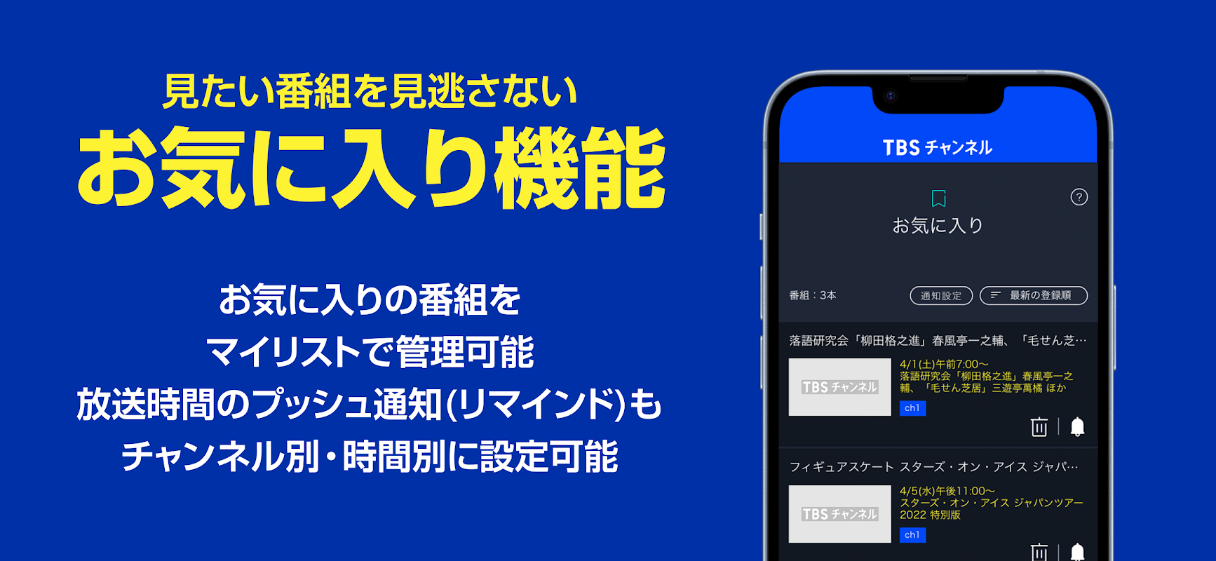 In addition, we will deliver information that matches the user's lifestyle with the "daily life with TBS channel" [favorites] and [notification] functions.