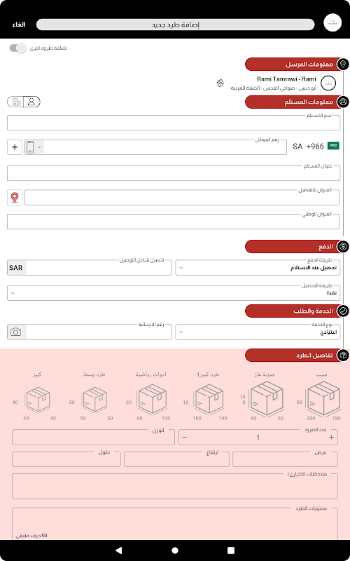 * ادخال الشحنات باستخدام التطبيق
