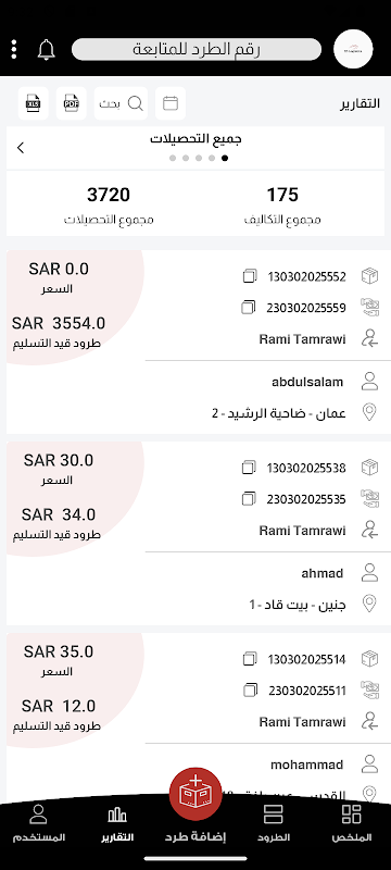 * مراقبة حالة الطرود وتتبع الشحنات