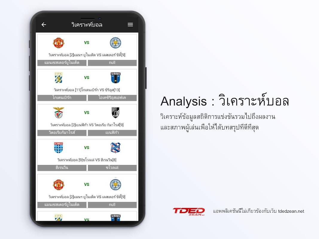 tdedzean แอพพลิเคชั่นที่มาพร้อมความสามารถที่มากขึ้นสามารถตรวจสอบ ผลบอล ในรูปแบบ livescore คือการรายงานผลแบบ realtime ตลอด 24 ชั่วโมง