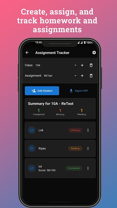 Export attendance, timetables, and ID cards to PDF or image format easily
