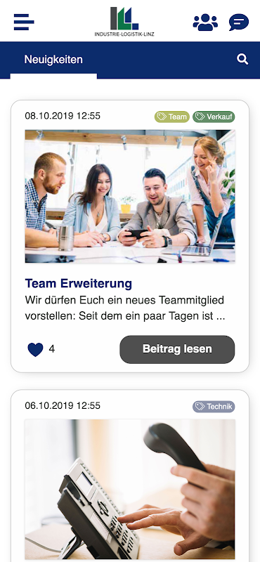 With the Team ILL app, you as an ILL employee are always informed about all the latest news from the company. With the internal messenger you can exchange ideas directly with your colleagues. You can also share personal experiences or ideas with your colleagues on the internal virtual pin board.