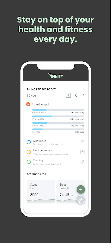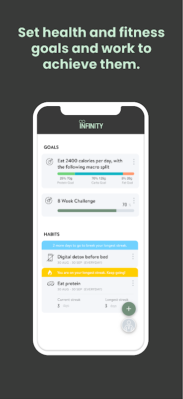 Track your workouts, plan your meals, and monitor your progress to stay motivated every step of the way. Plus, connect with the Team Infinity Community, where we all come together and encourage each other along the way to achieving your goals and maintain a balanced, healthy lifestyle.