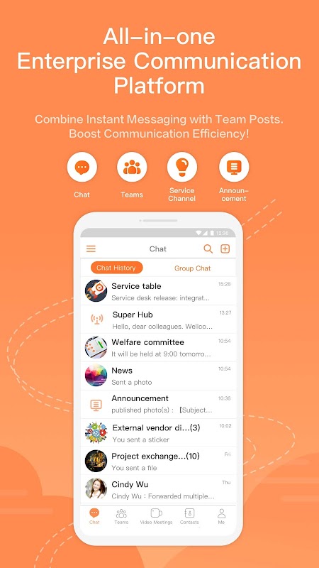 Separating private messages with work messages, the line between work and private life is clear. Support for various files, including documents, location, videos and recordings. Moreover, there are read receipts to instantly confirm whether the message is received.