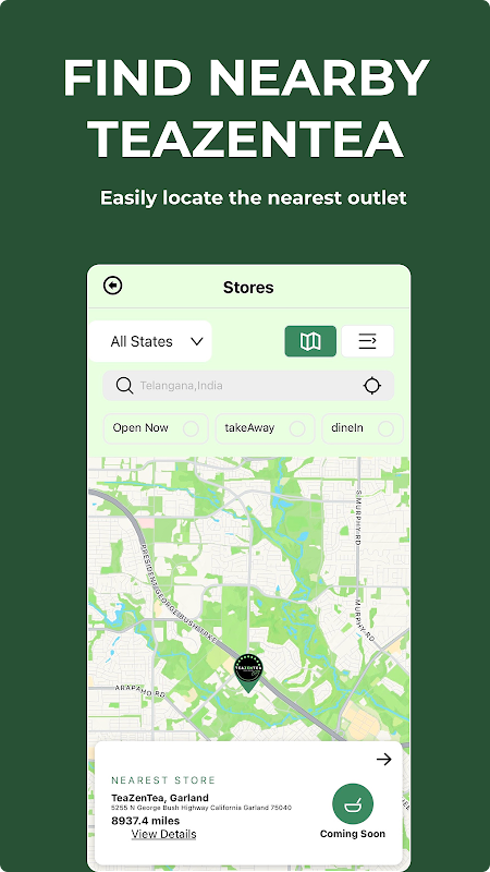 Find Nearby Stores – Locate the nearest TeaZenTea outlet for a quick pickup or a cozy dine-in experience.