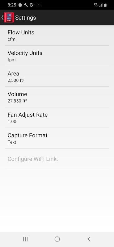 • Choice of code compliance results right on the screen, including ACH50, Flow@25, 50 and 75 Pa, and Flow per 100 square feet.