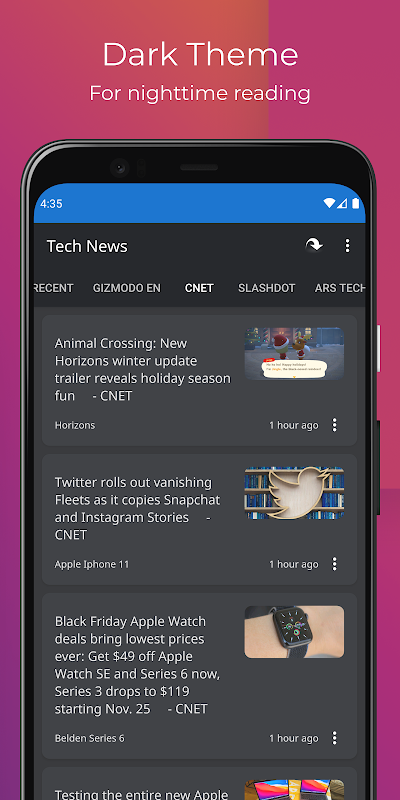 Tech News is a lightweight and immediate RSS news reader for people who just want to read the news. No unnecessary graphics, no delays, no noise. The focus is always on the content.
