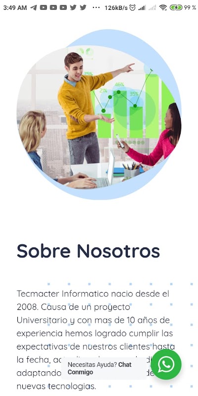 Tecmacter Informatico nacio desde el 2008. Causa de un proyecto Universitario y con mas de 10 años de experiencia hemos logrado cumplir las expectativas de nuestros clientes hasta la fecha, actualizandonos cada dia y adaptandonos a las exigencias de las nuevas tecnologias.