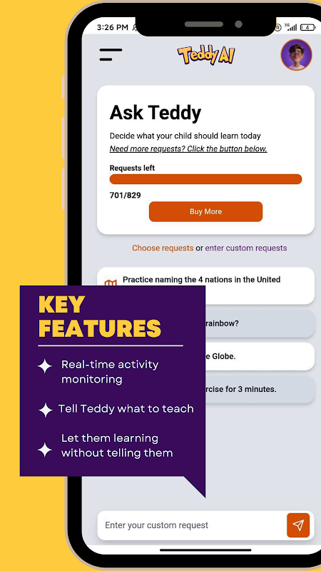 -Let Teddy AI teach your child exactly what you want them to learn into the app