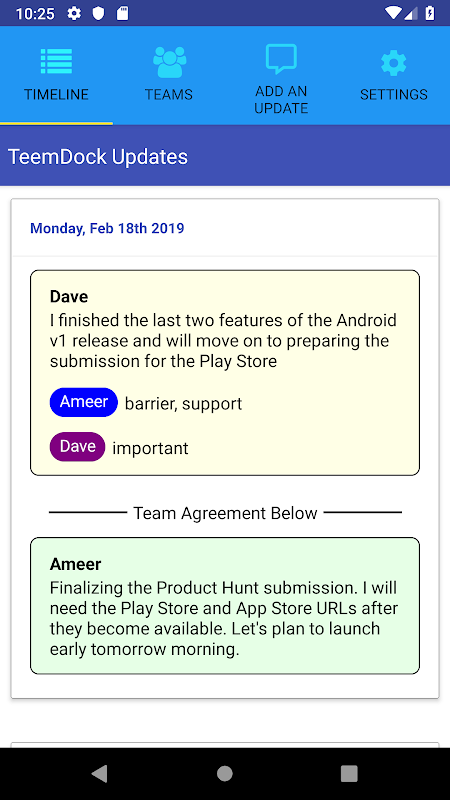 TeemDock allows teams to stay updated easily and then cancel meetings when they're not needed. Give your teammates back the time they deserve. Keep your team in flow state, achieving goals and milestones at a pace uninterrupted by unnecessary meetings.