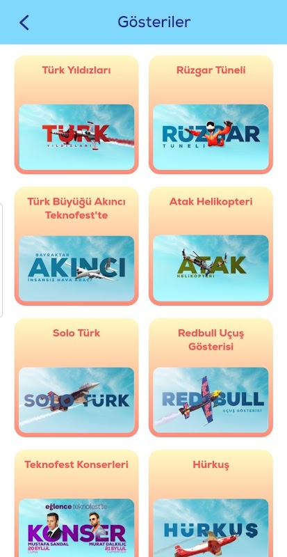 Her dakikası dolu dolu geçen Teknofest’in her dakikasını dolu dolu yaşamanız için Teknofest Uygulaması hizmetinizde. Teknofest uygulaması ile ücretsiz giriş kartınızı oluşturabilir, kendi festival programınızı kolayca planlayabilir, "Hangi etkinlik, hangi saatte, nerede?" kolayca takip edebilirsiniz.