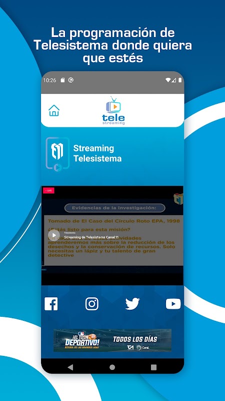 Wherever you are you can enjoy the programming of your television channels Telesistema channel 11, Teleantillas channel 2 and Coral 39