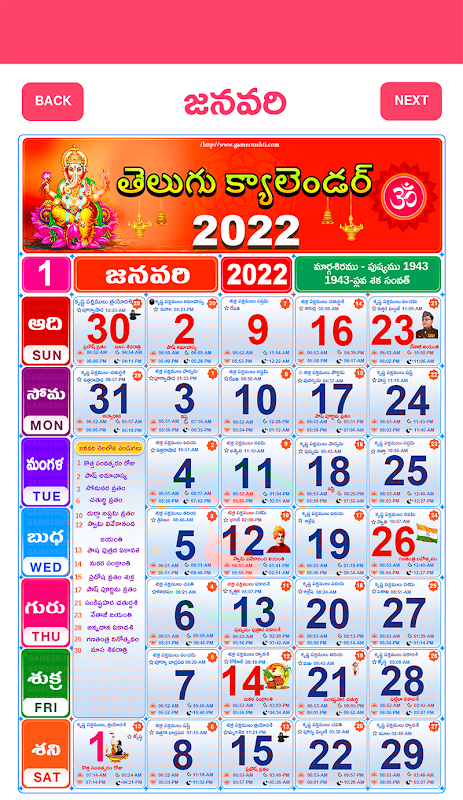Telugu Calendar 2022 తెలుగు పంచంగం 2022