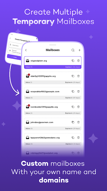 Generate a temp mail or disposable email with one tap. Perfect for one-time use, app signups, or online trials — your temporary email is ready instantly.