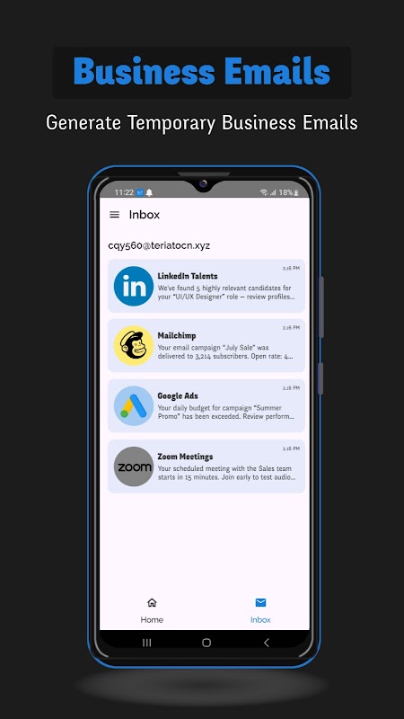 - Open the app and get a random, disposable temp email automatically.