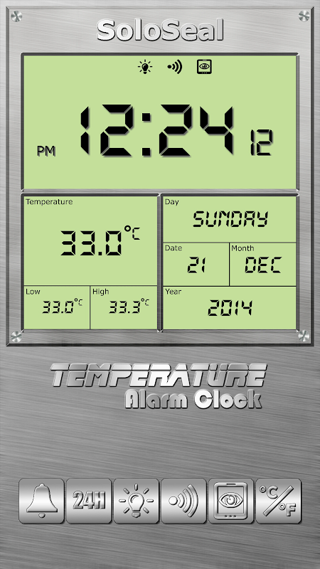Temperature Alarm Clock uses the device's internal thermometer sensor to measure the surrounding environment's ambient temperature.
