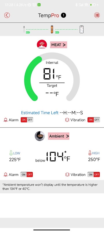 The app communicates with the device via Bluetooth, displays the grill temperature in real time, and allows you to set temperature alarms, statistical temperature change curves, etc.