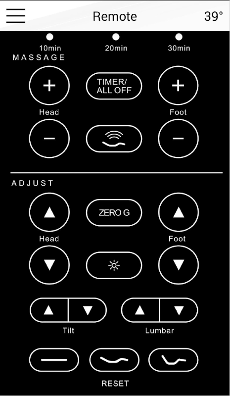 Control your Tempur Adjustable Base from your Android device. Check your local weather before you head out for the day with our built in weather app. You can adjust any function of the base including head and foot articulation, as well as the massage functions, all with just the touch of a finger! This easy to setup app works with any Bluetooth enabled Tempur Zero-G adjustable base and will mimic the functions of the remote that came with your Tempur Adjustable Base.