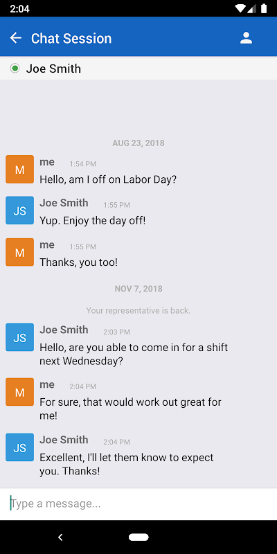 - Accessing current and previous assignments (including the work site address, shift hours, and dress code)