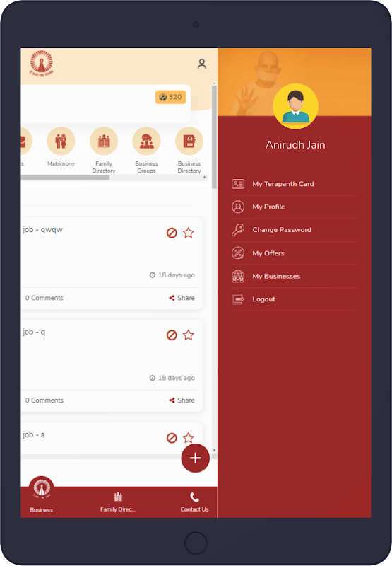 Business directory: Search all terapanthi businesses from this one page. Filter on basis of category, city, etc. You can also edit your own business from here and also offer discount for JTC card right from here