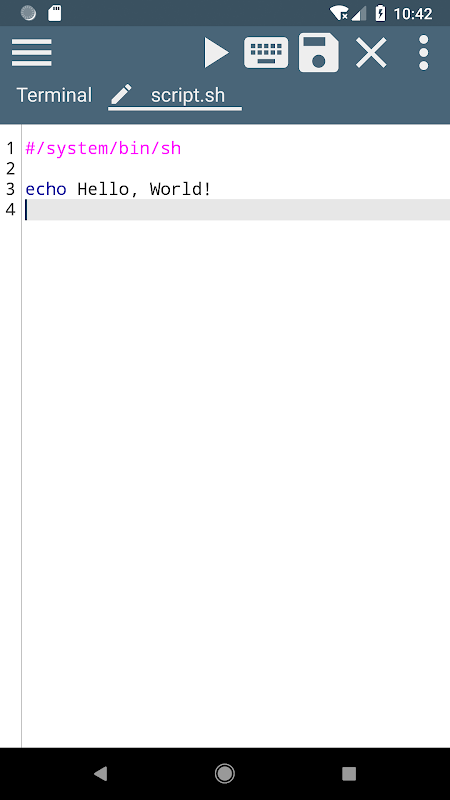 It comes with basic unix commands preinstalled and a shell script editor that can edit and run shell scripts.