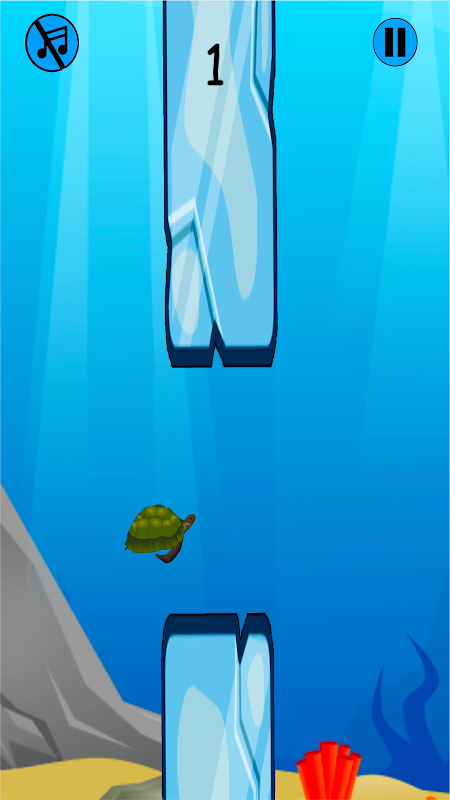 Terrified Turtle, A fun adventure game, Swimming through many ice obstacles trying to avoid them as you gain points! World linking high score board lots of competition! Swim, hop, and float! Do it all in this new exciting app! Terrified Turtle is about a turtle who terrified of hitting the cold ice. While the turtle is swimming through a dangerous variety of floating ice. You must stay on keeping this turtle swimming to miss these floating objects. Pressing anywhere on the screen will get you to stay a float, but don't let the turtle run into any ice! Good Luck!