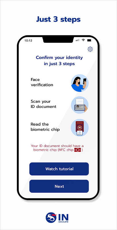 The app will guide you through the identity verification process, with step by step instructions and visual animations.