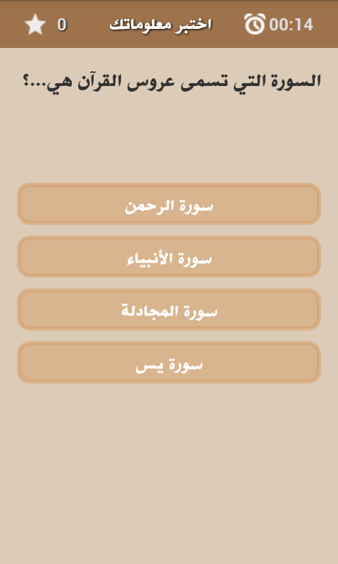 This is one of the Arabic Culture test game with question and answer on the general culture, different types