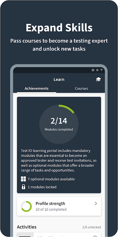 Our focus is to make testing on the Go as easy as possible. We offer an overview of all available projects and tasks, intuitive submission forms with smart AI hints, and reminders of ongoing tasks and requests — all to support you in your testing journey.