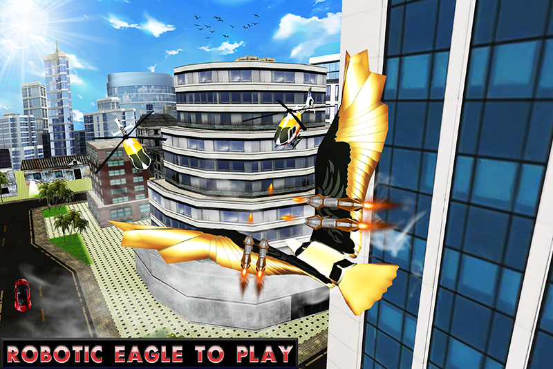 Lovely Grand City occupied by these lethal dangerous robot mafia and robotic gorilla in this action simulator. Beautiful city is under control, got attacked by the vigilant robots like robotic gorilla monster, deadly robot warrior, city gangsters and drone helicopter creating chaos as well as destruction around. US police gets alert for city rescue forces in this multi robot transforming game. Only a real flying Tetra Eagle Robot can fight with deadly robots in city battle. In city survival rescue mission you have to utilize your flying robotic eagle warfare experience to free city from deadly robots in real tetra robot transforming game.