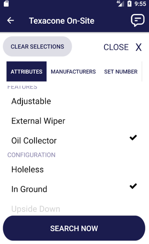 The APP uses the same patent pending Interactive Elevator Cylinder Head ID system as found on Texacone's website. By selecting the head attributes, the choices are narrowed down from over 150 choices. From that point, it's a simple click to gain access to the detailed information for that manufacturer and specific cylinder head.