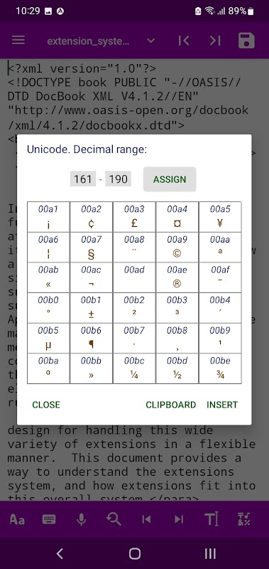 * Add symbols from the UNICODE table (including emoji) to the text.