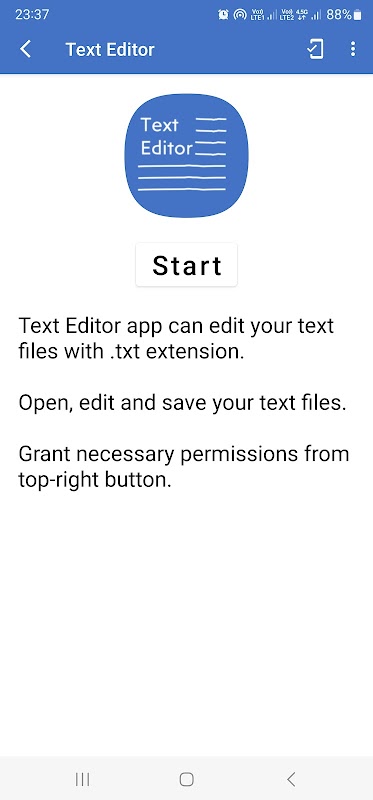 Text Editor aims to improve your productivity by editing text files with the (.txt) extension on your Android devices, such as mobile phones and tablets. You can browse text files, edit text files, insert done/cancel tags then arrange the text view of the app. Then, you can save your changes to the same file directory on your device. Also, you can create your own text file from zero by setting the name and the file path as a directory.