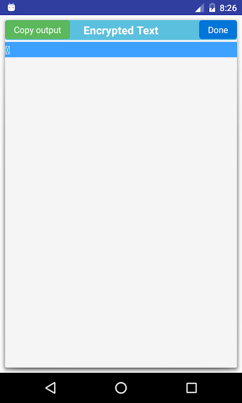 Encrypt your text for emails , sms or other document's texts to hide your precious data from unwanted people. Have fun . This application has multi-language encryption support. So it can encypt text written in your native language too.