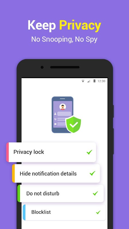 - Privacy Lock: Keep your messages & calls under lock for private situations. Hide your message! Just like a secure applock for TextOne.