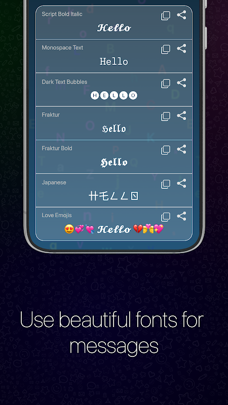 Adorn your words with diverse Styles. Choose from different fonts, colors, and sizes. Style your messages beautifully!