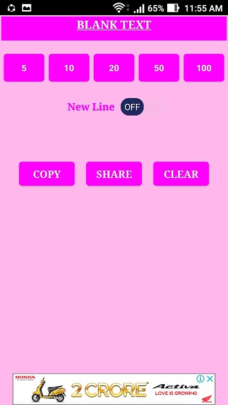 Repeats the text as many times as you want and send blank text on whatsapp, fb