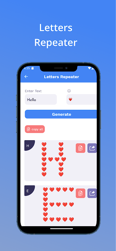 Not only can Text Repeater repeat text, but it can also multiply your messages. Imagine the impact of sending a message that is repeated and multiplied, effectively emphasizing your message and capturing your recipients' attention. With the repeater function, you have the power to make a lasting impression and stand out from the crowd.