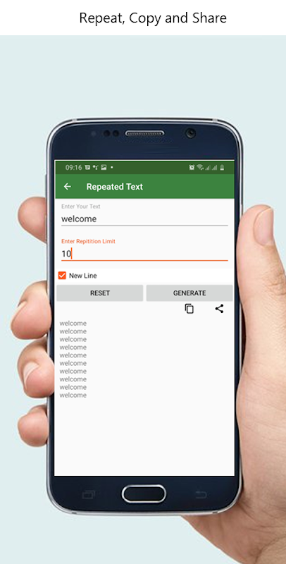 A Text Repeater app can create infinite amount of identical text for messages. You can easily share with your friends and family. Also, you can generate random numbers which may consist of letters, numbers or symbols. Sometimes, It is very difficult to write the same word or sentence several times. That's why we have built this app for you so that it will help you in every step of your writing repeated text.